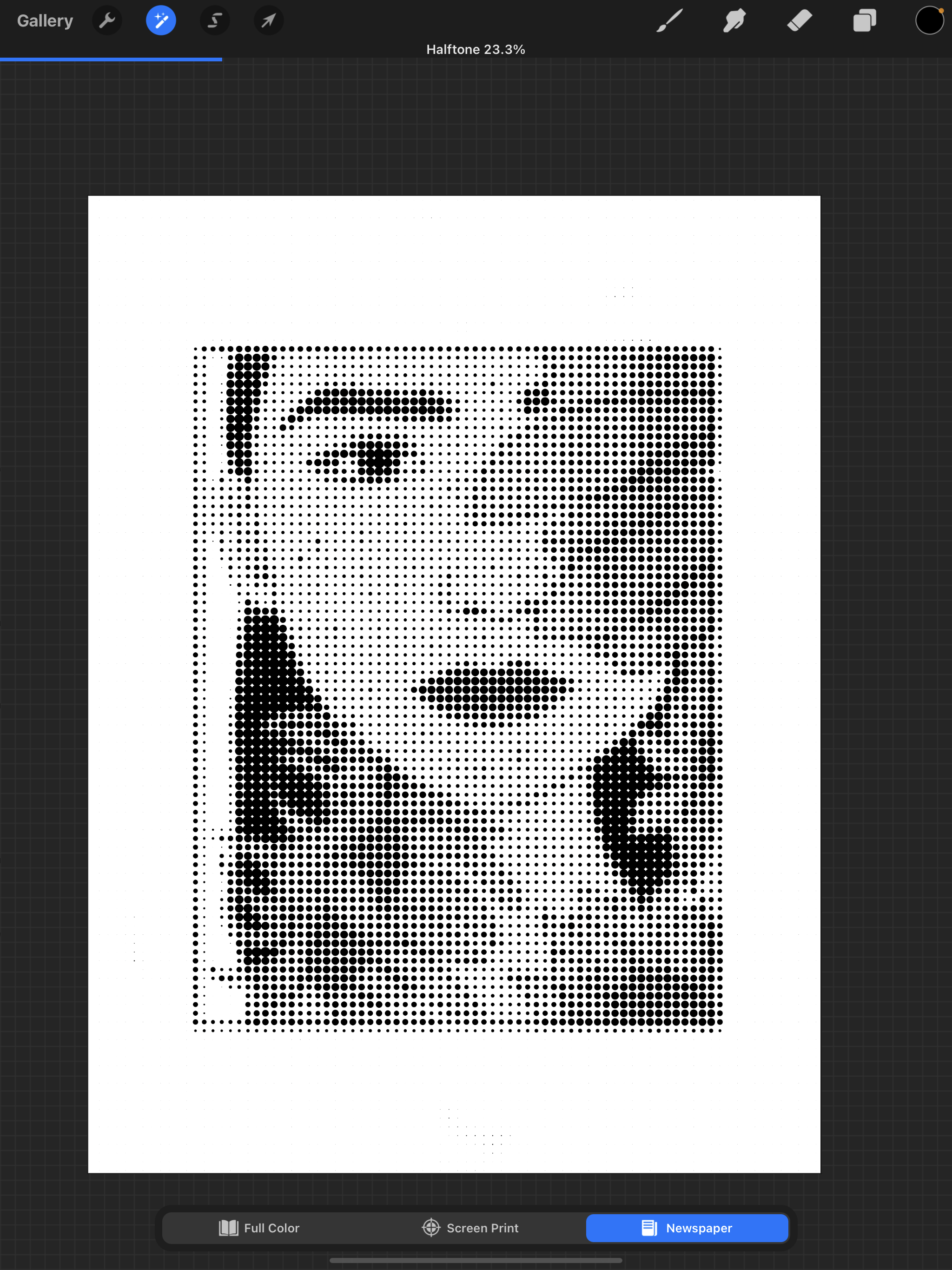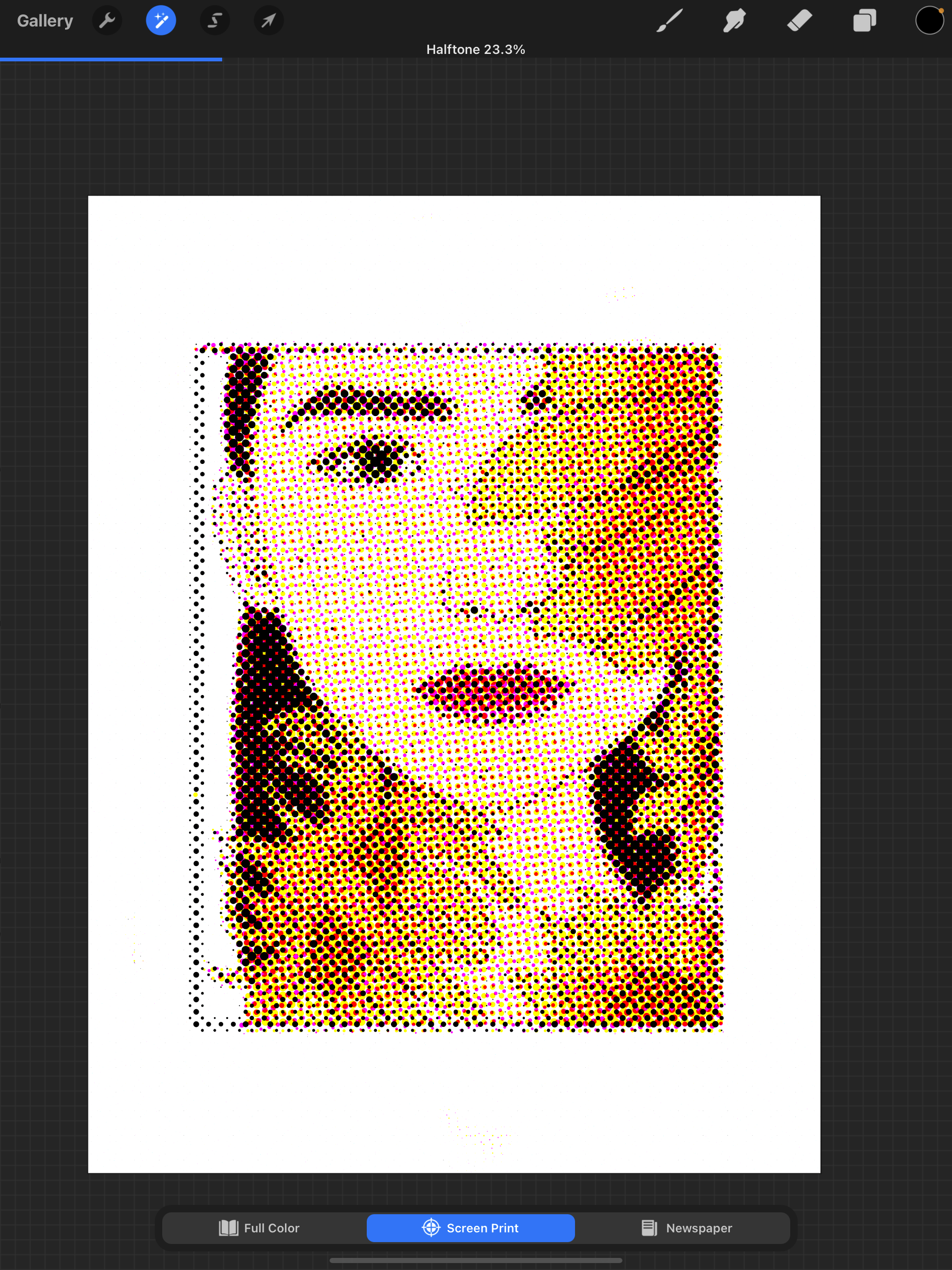 You can adjust how it affects the image/drawing. My favorite thing to use this filter for is for people and portraits. Newspaper is like a black and white filter and the other two are screen print and full color.