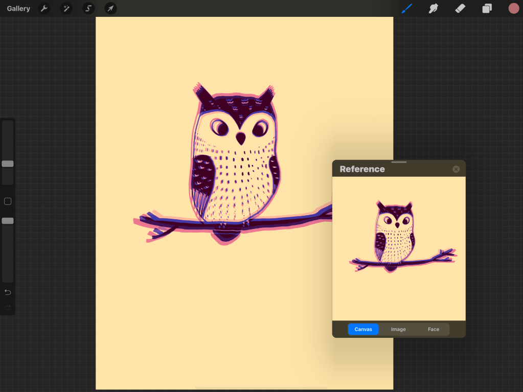 Reference is a new feature that is both helpful and fun to play with. You see it a lot as face paint and proportions but you can also reference an image or your canvas. When you try the canvas option you will notice whatever is on your canvas appears, this is great for making sure that when you are zoomed in, the whole image still looks good. I will be using this as I draw these next few weeks. Referencing a photo just became easier, now instead of it being a layer, you can put it to the side of your canvas. Yay! I’m super excited about this feature. Reference is on actions, canvas, and you just swipe right.