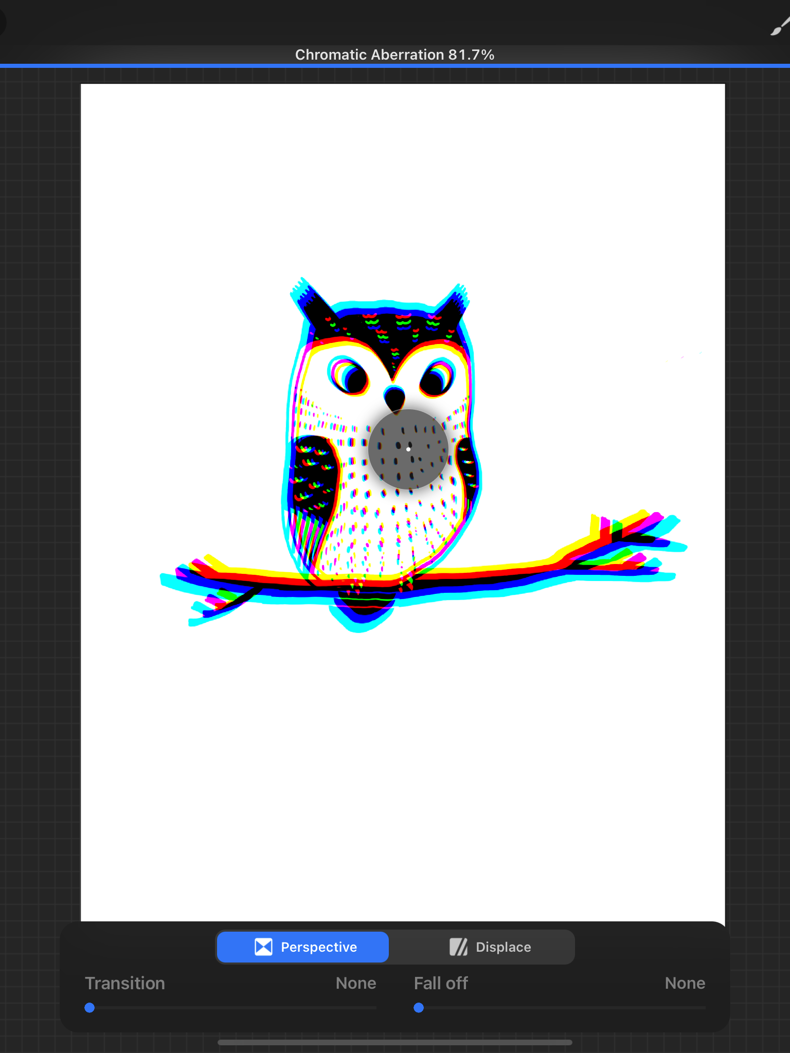 The first one is so cool. I’m not sure if it’s new or just updated but it’s called chromatic aberration. You can use it in displace or in perspective, they both use a chrome effect. Displace: duplicates and slides over your pre-image into the space already created, like an alpha lock. Perspective: moves outside of that space and duplicates the outline of the image. Either way, this gives your artwork some dimension.